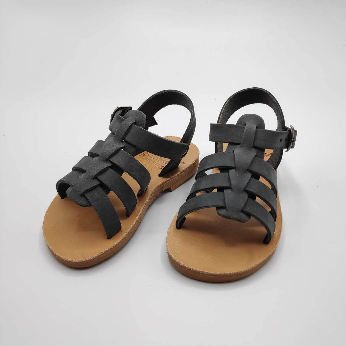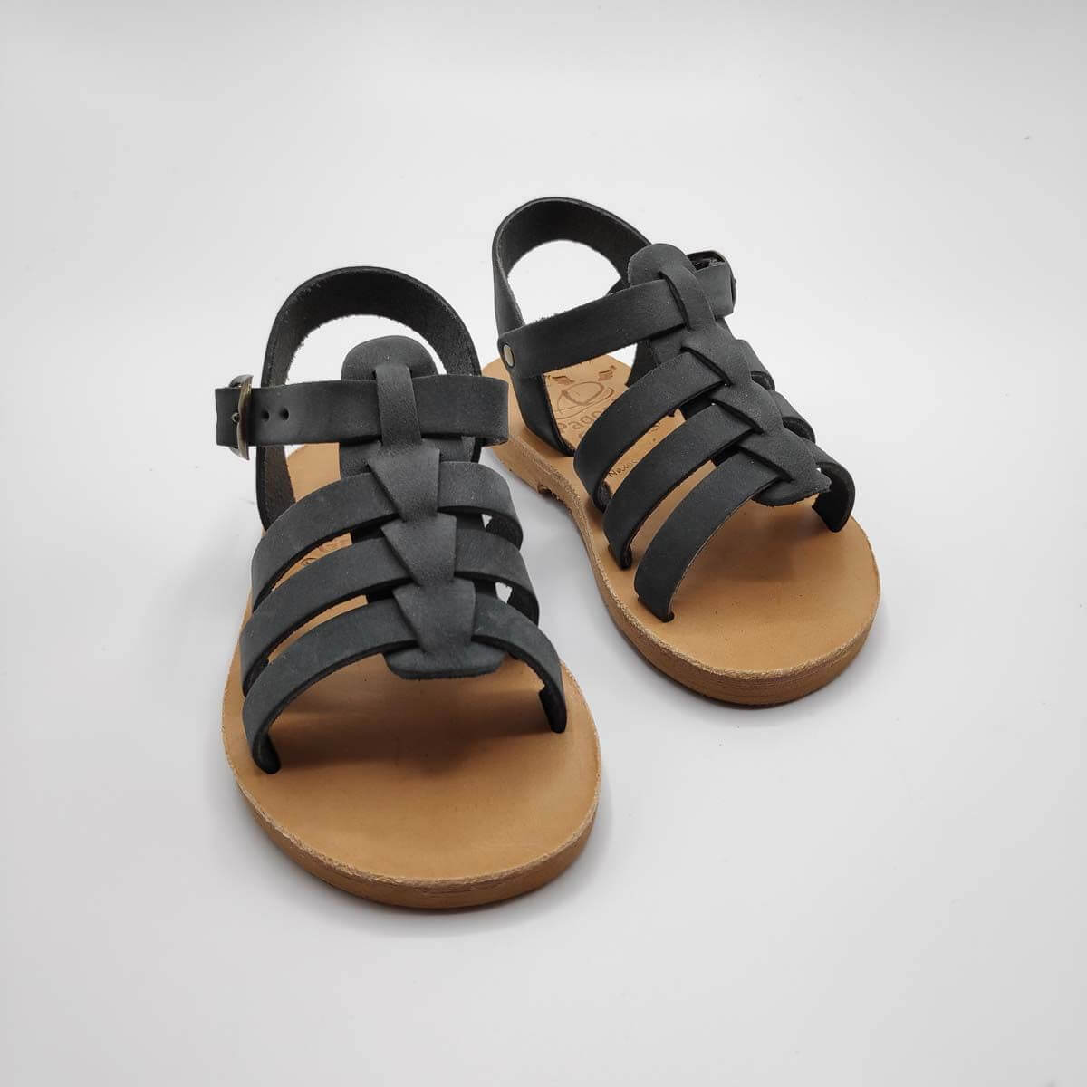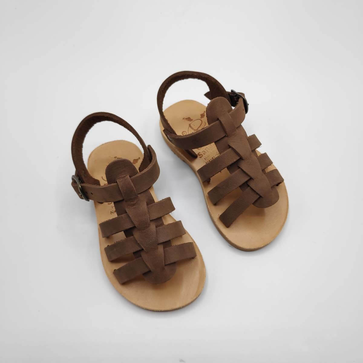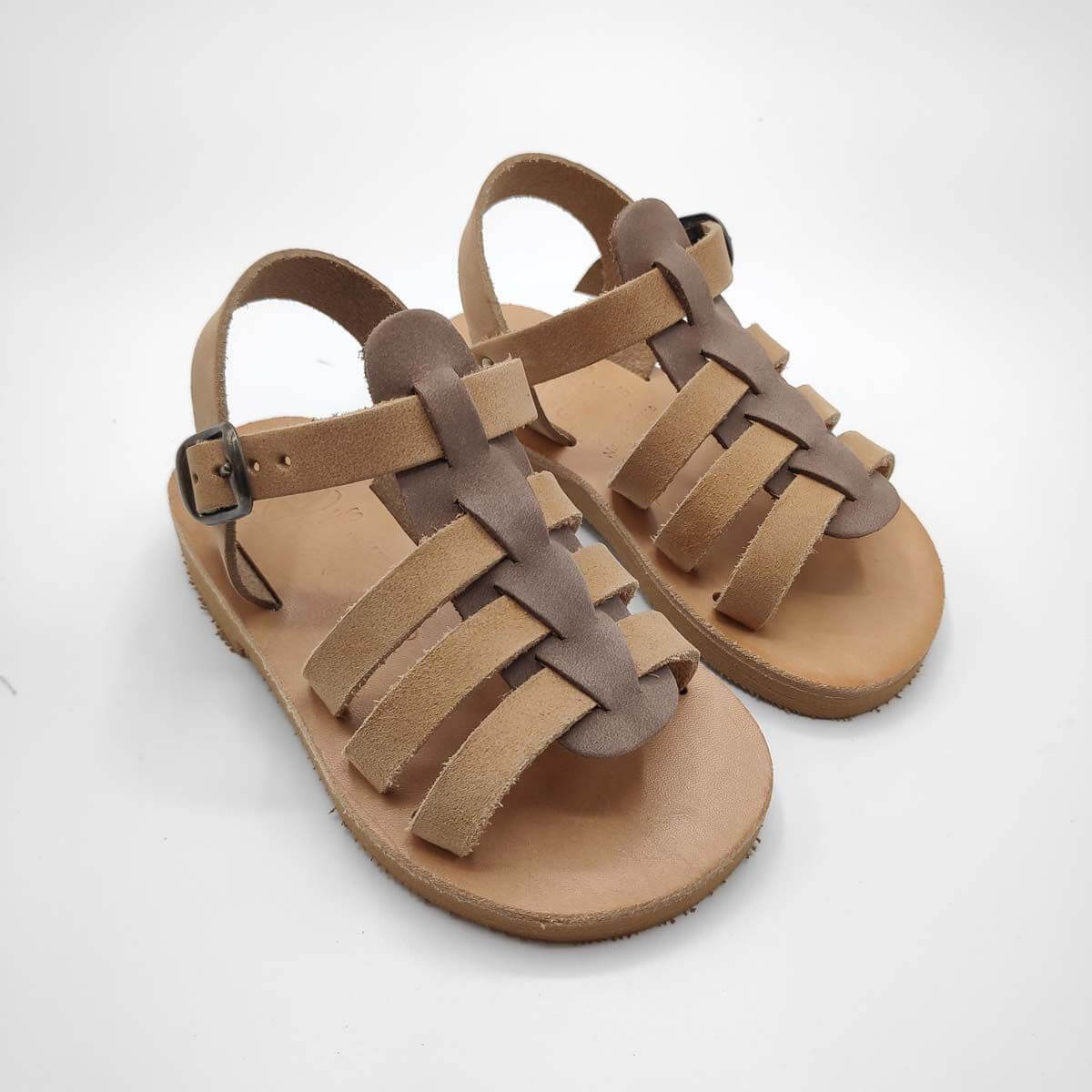 [vc_row][vc_column width=”1/2″][vc_column_text text_larger=”no”]SEPALI Kids gladiator sandals are handmade with love and care to end up on little feet! Specially designed to be worn by kids of all ages, these shoes will last through all the hardship due to their high quality materials and solid construction. Consisting of a sturdy leather sole with rubber finishing that eliminates chances of slipping, topped up with a strappy leather body and an ankle strap with buckle-fastening, this model holds those little feet in place.
