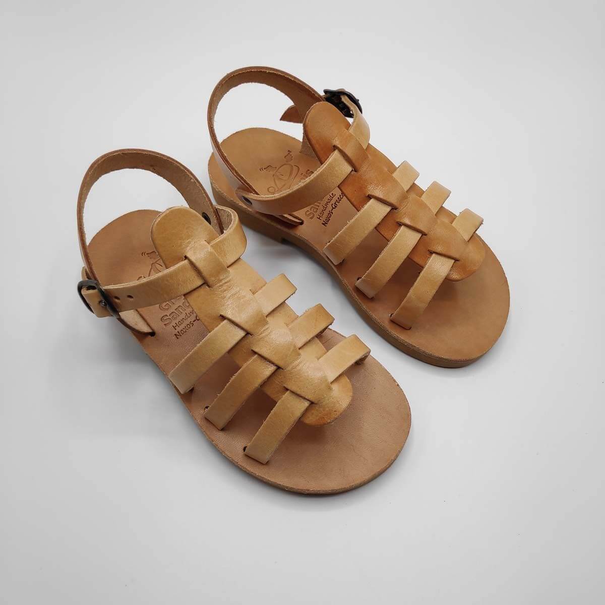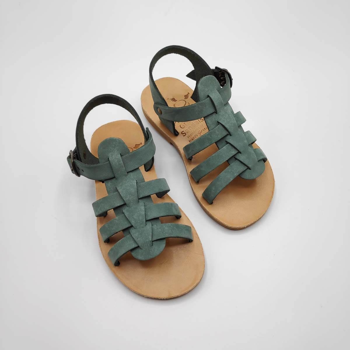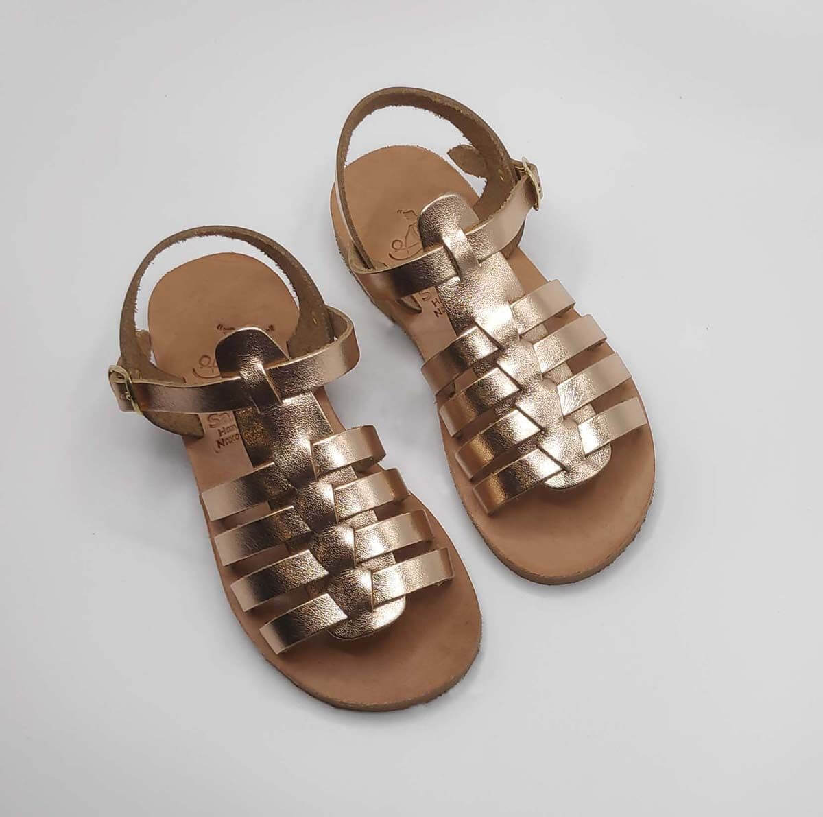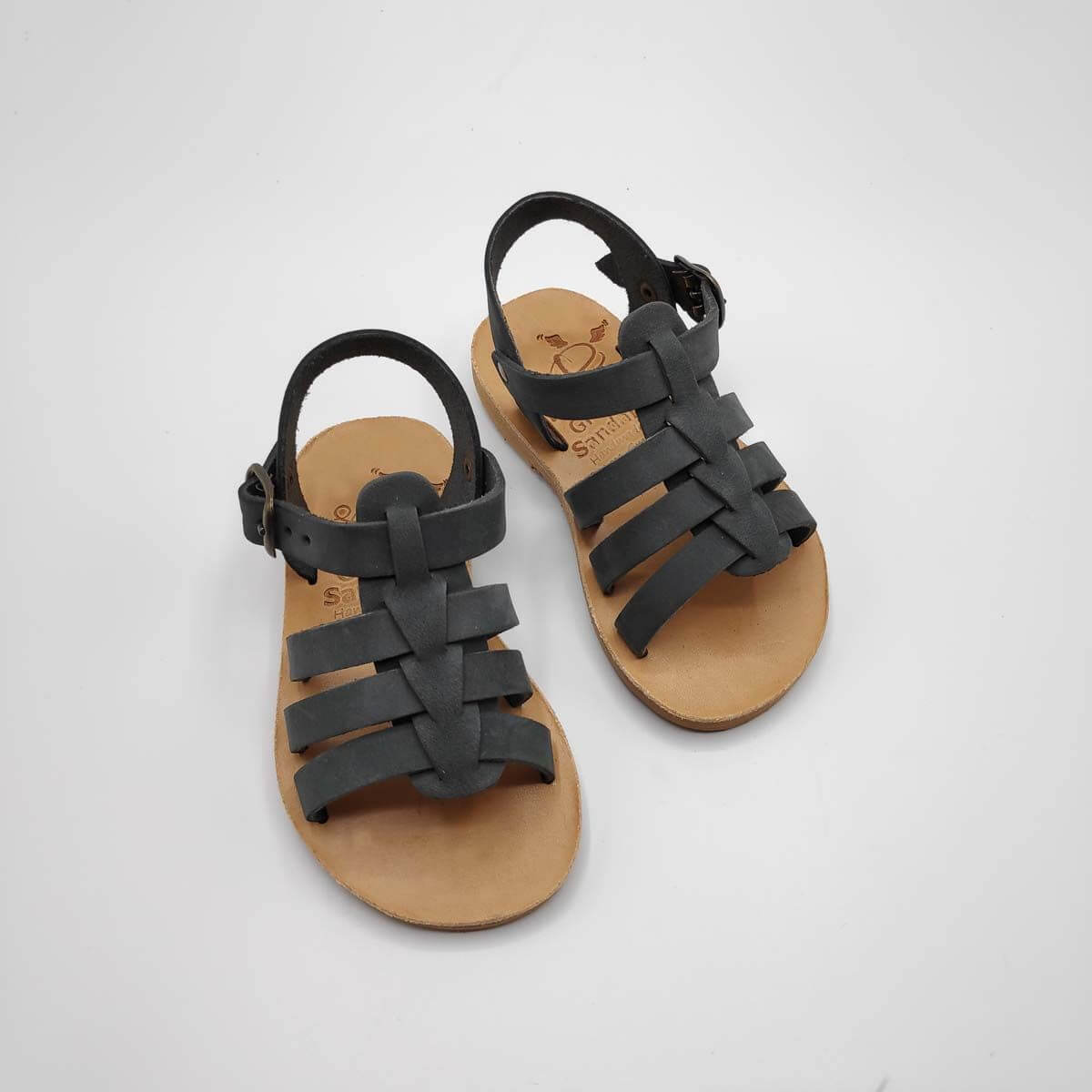[vc_row][vc_column width=”1/2″][vc_column_text text_larger=”no”]SEPALI Kids gladiator sandals are handmade with love and care to end up on little feet! Specially designed to be worn by kids of all ages, these shoes will last through all the hardship due to their high quality materials and solid construction. Consisting of a sturdy leather sole with rubber finishing that eliminates chances of slipping, topped up with a strappy leather body and an ankle strap with buckle-fastening, this model holds those little feet in place.