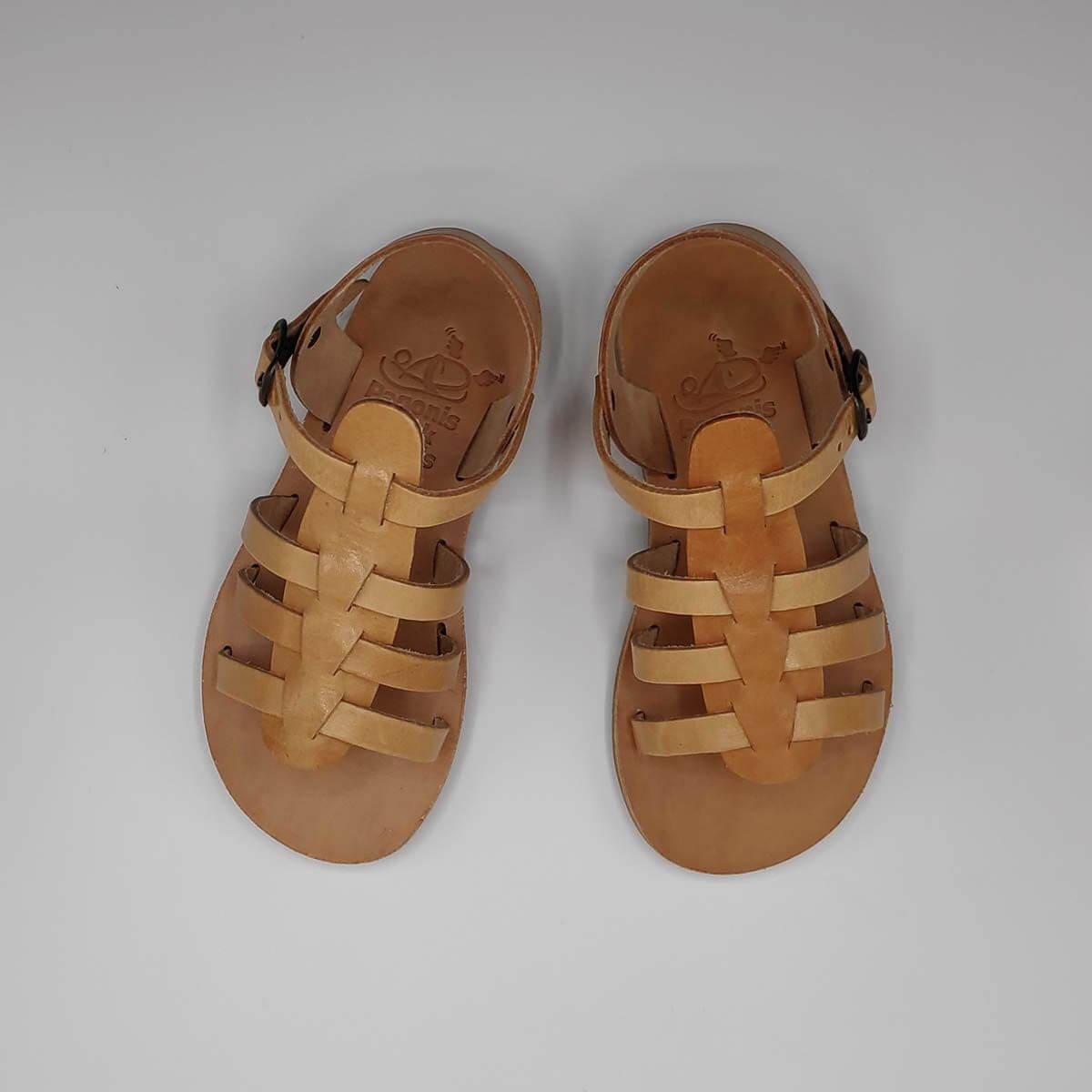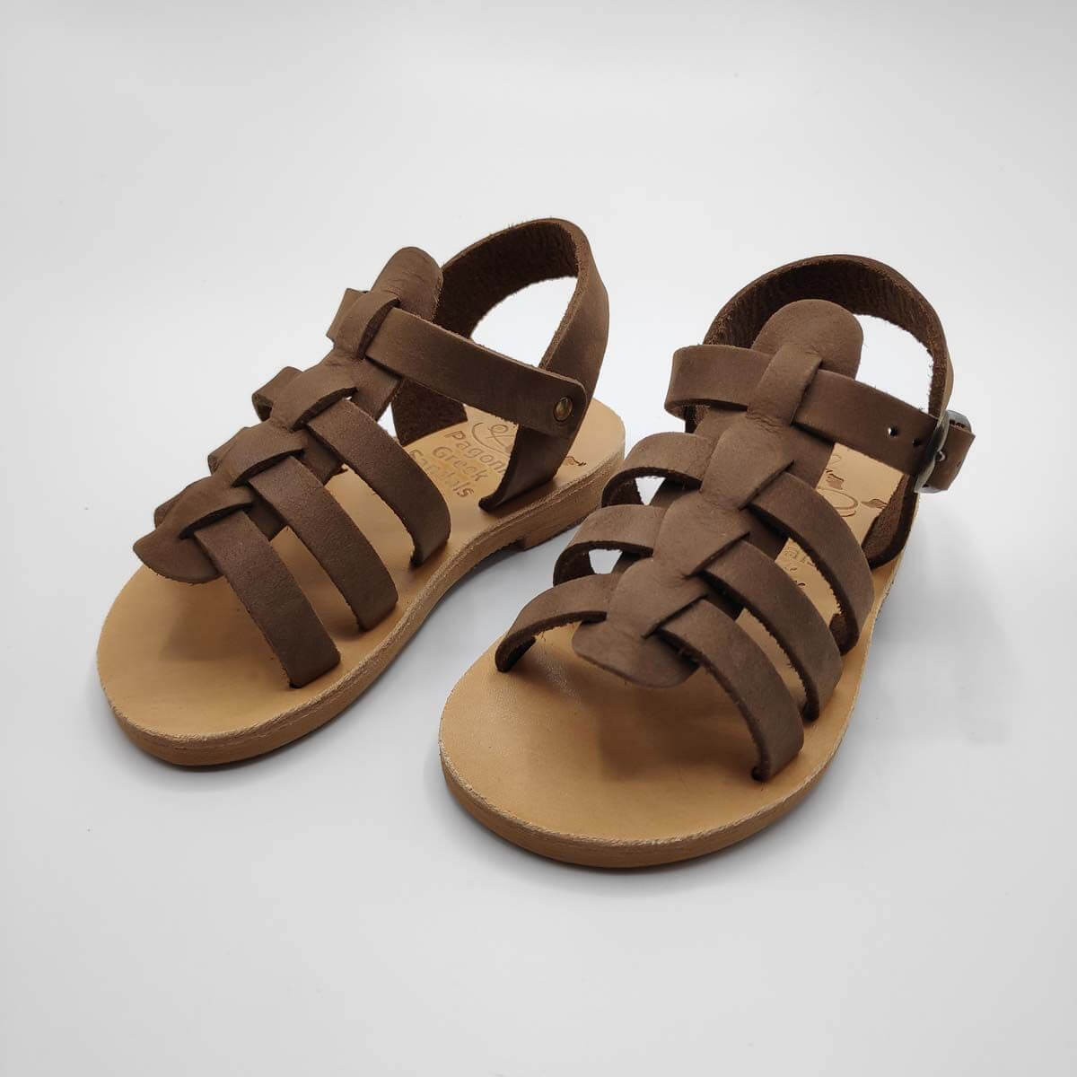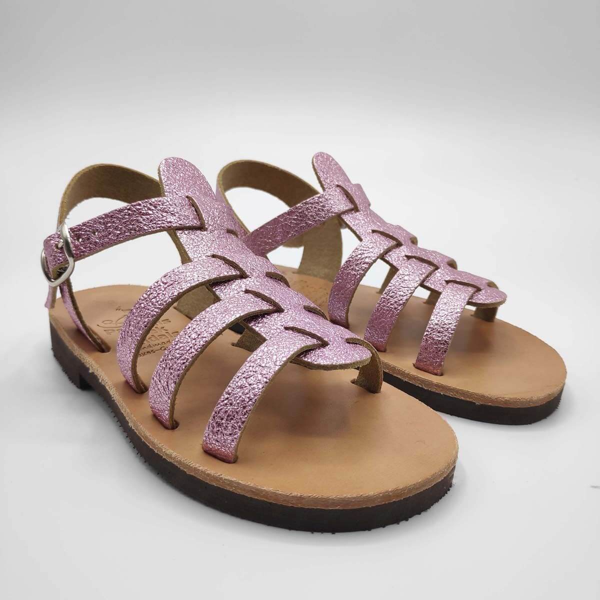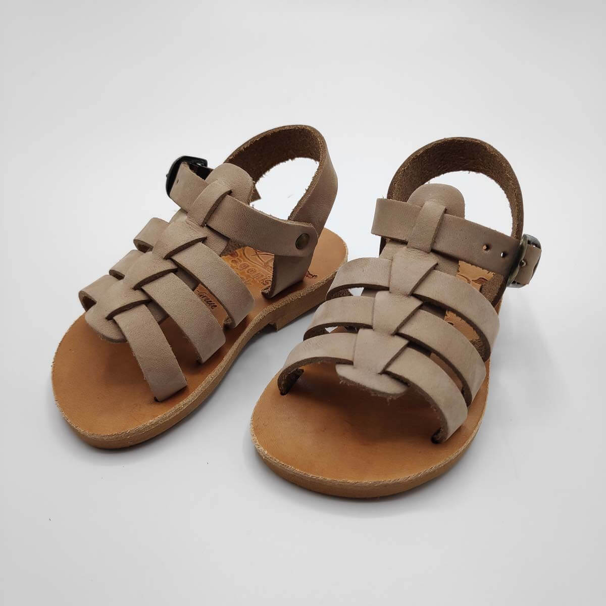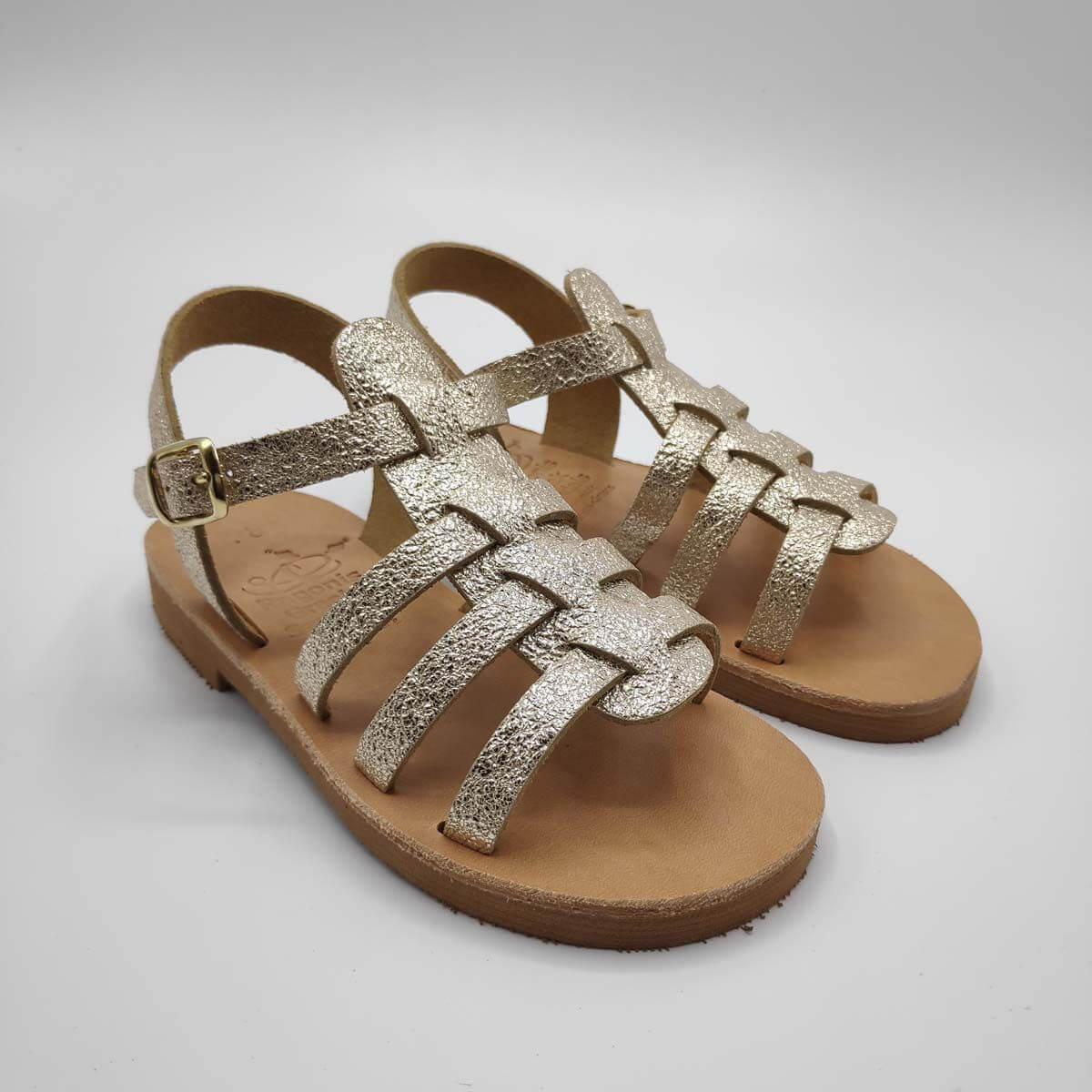 [vc_row][vc_column width=”1/2″][vc_column_text text_larger=”no”]SEPALI Kids gladiator sandals are handmade with love and care to end up on little feet! Specially designed to be worn by kids of all ages, these shoes will last through all the hardship due to their high quality materials and solid construction. Consisting of a sturdy leather sole with rubber finishing that eliminates chances of slipping, topped up with a strappy leather body and an ankle strap with buckle-fastening, this model holds those little feet in place.