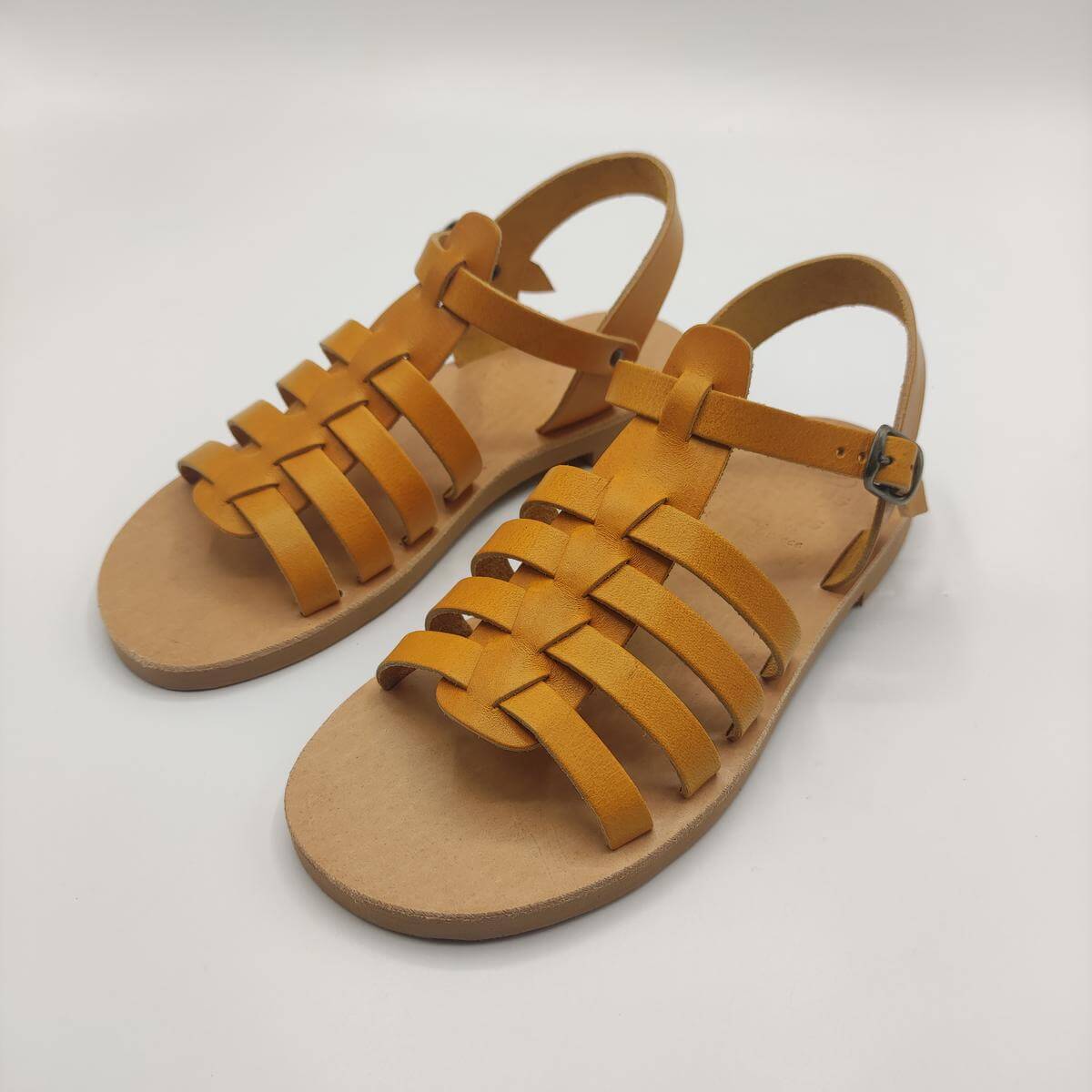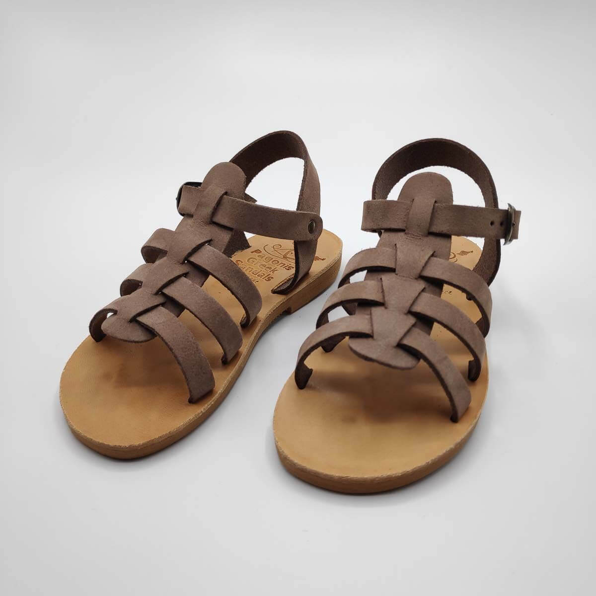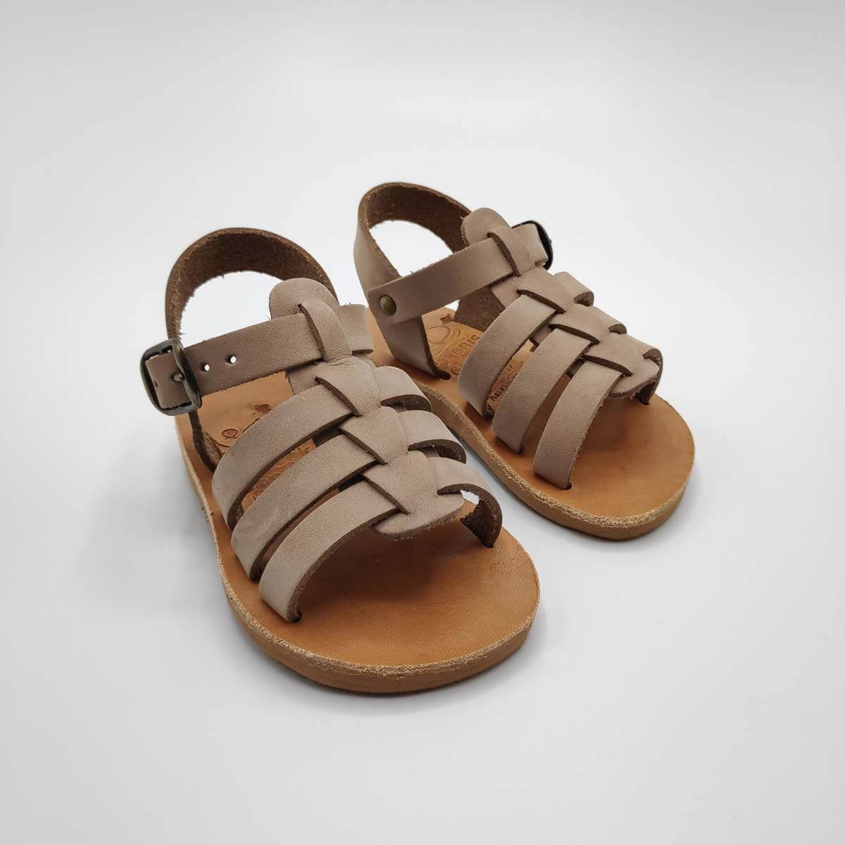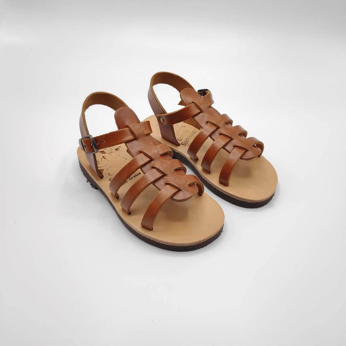 [vc_row][vc_column width=”1/2″][vc_column_text text_larger=”no”]SEPALI Kids gladiator sandals are handmade with love and care to end up on little feet! Specially designed to be worn by kids of all ages, these shoes will last through all the hardship due to their high quality materials and solid construction. Consisting of a sturdy leather sole with rubber finishing that eliminates chances of slipping, topped up with a strappy leather body and an ankle strap with buckle-fastening, this model holds those little feet in place.