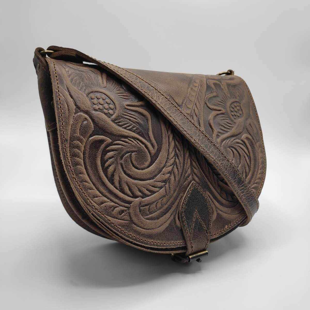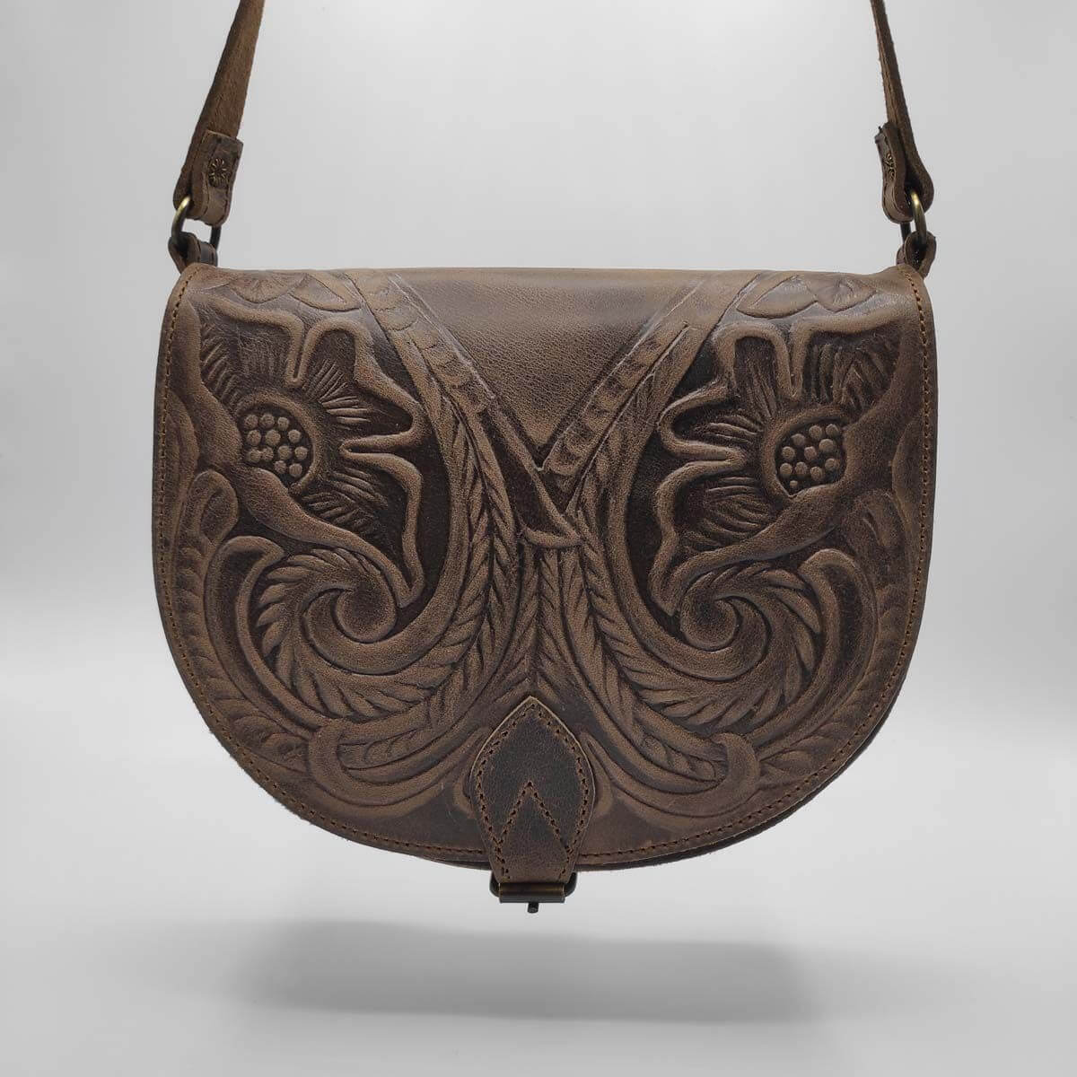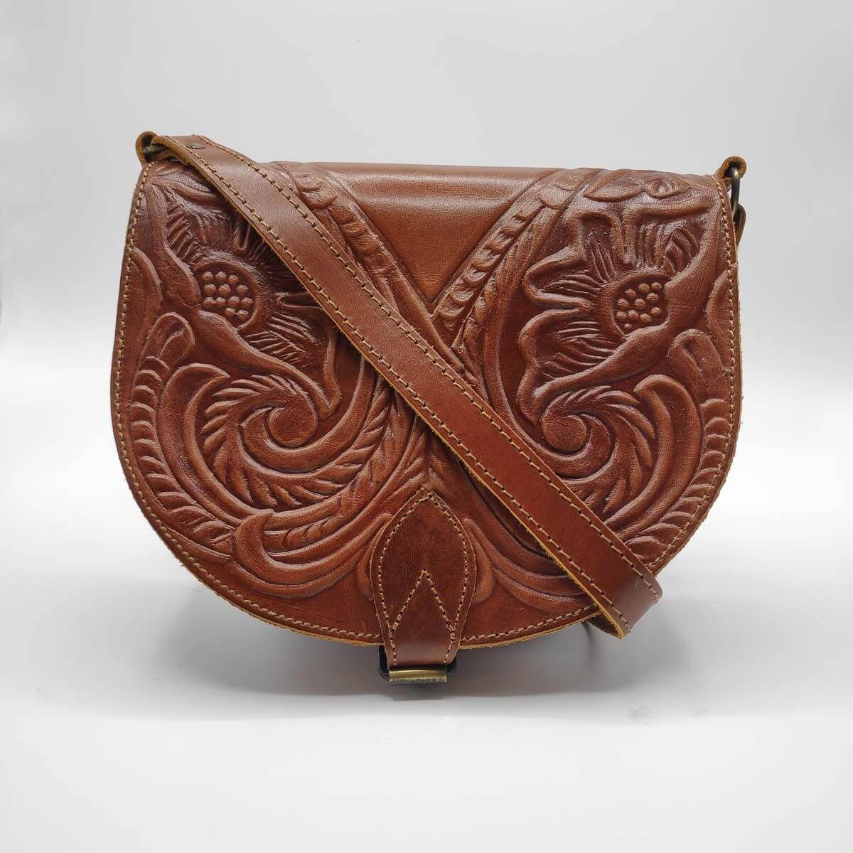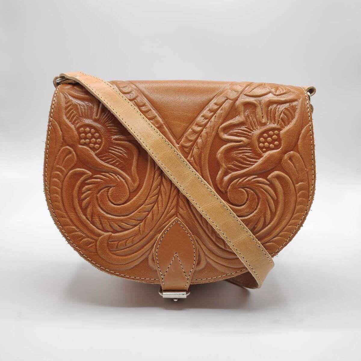 Our full grain leather cross body full flap half moon bag is handmade with love in Greece. Designed with a fold over top with buckled close and leather straps, it features 2 internal and a front zip compartment that will help keep your items organized! Available in 2 sizes and 4 colours, in smooth or embossed finishing, its versatility makes it a must have piece in your wardrobe.
