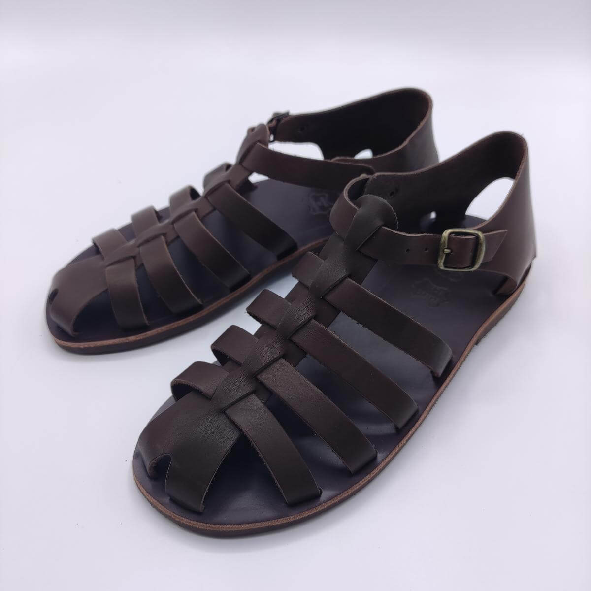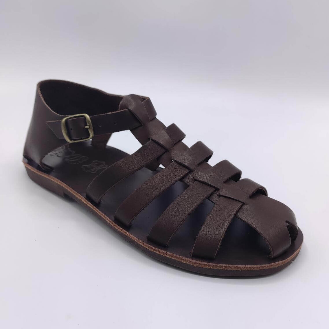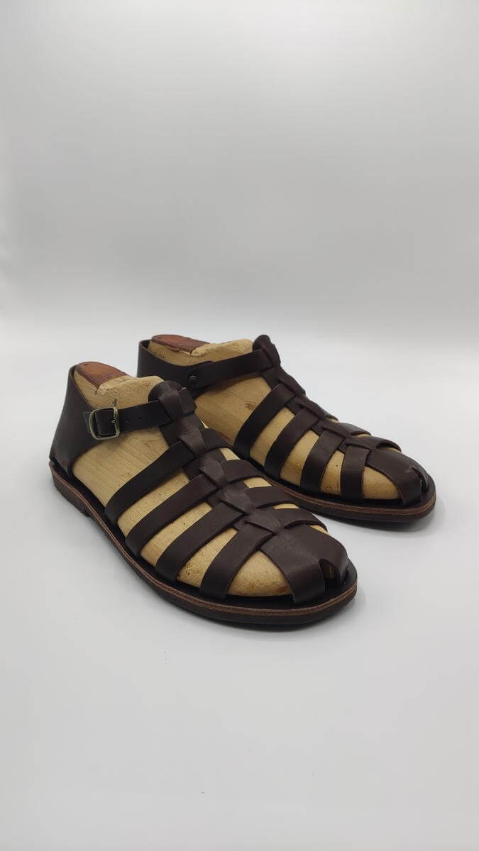 This mens closed toe sandals is design with high quality leather with 4 straps that goes across the front and middle parts of the foot. It also comes with an adjustable ankle strap. These straps are weaved through a middle strap giving the sandal its closed toe finish and extra support for the user. This greek sandals is set on a leather upper sole and a textured rubber bottom sole for better grip and durability.
