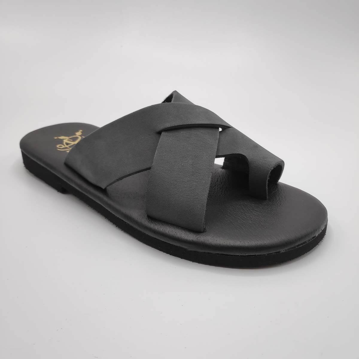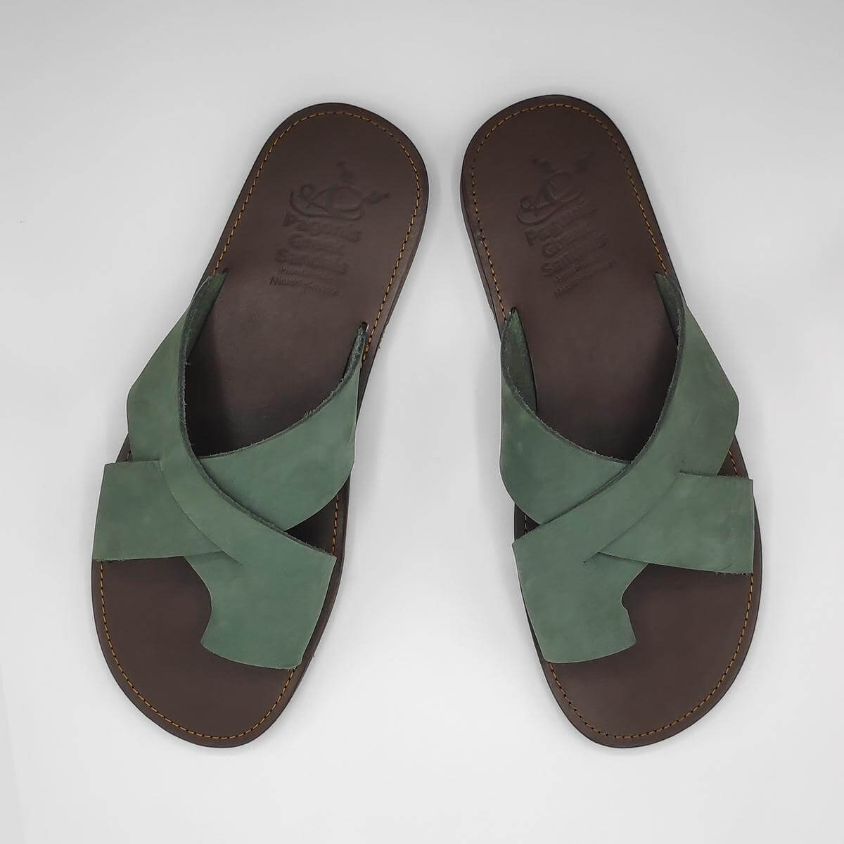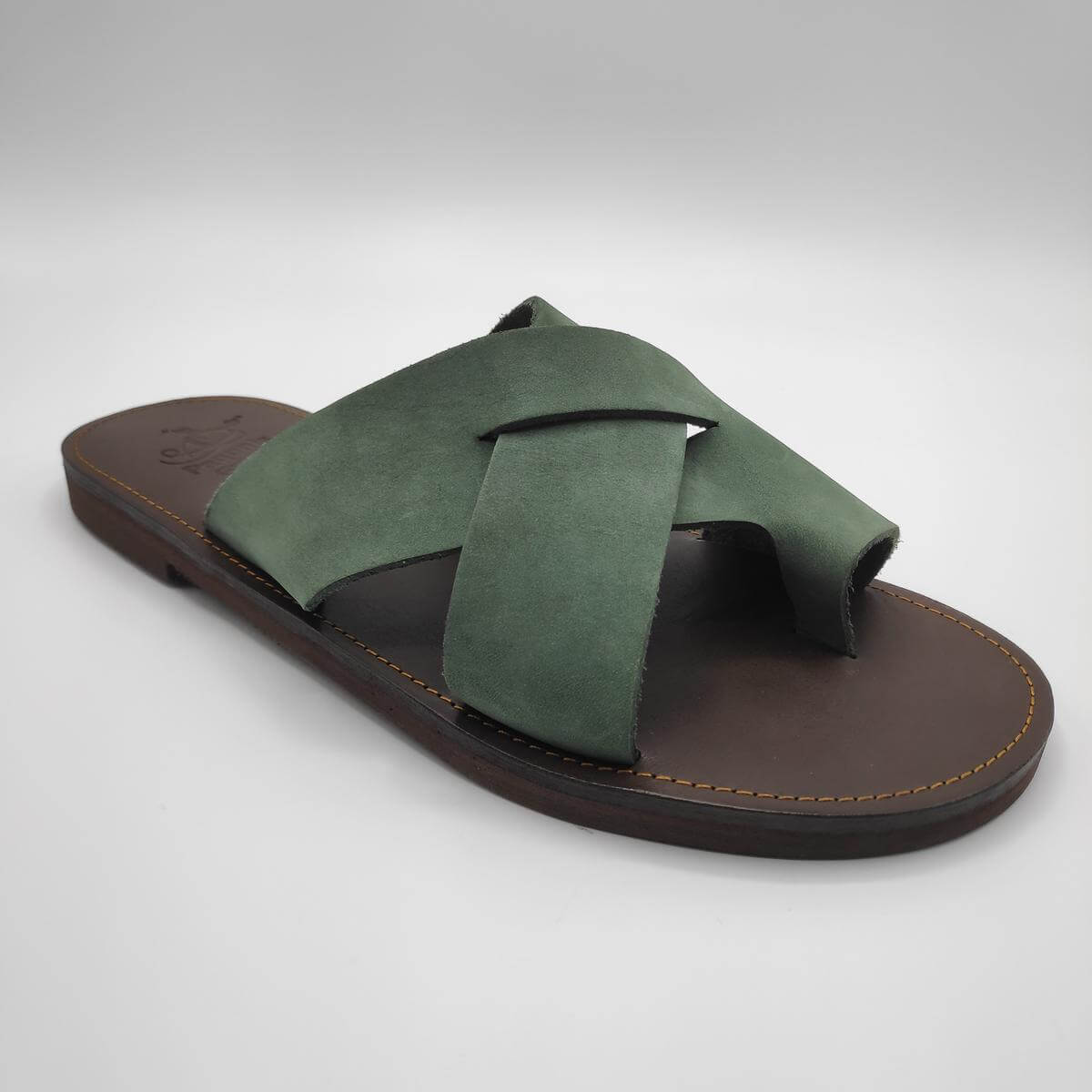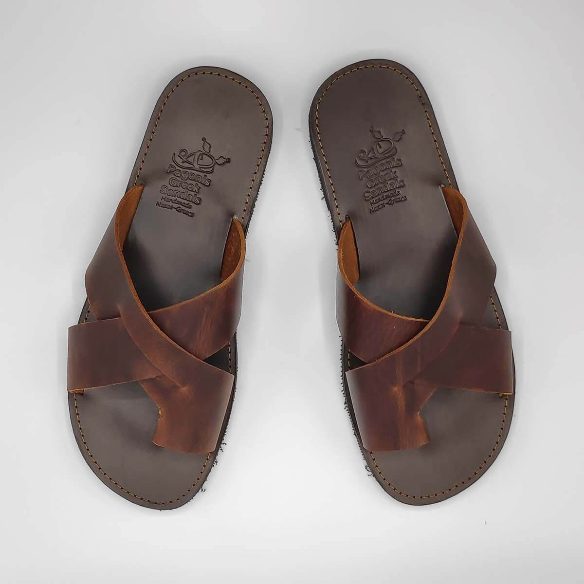 The Orcos Men’s Handmade Leather Sandals is a a slide sandals is design with a wide crisscross strap and a big toe separator. Loved for its modern contemporary style and comfort, the straps are set on a wide angle on a leather upper sole and a textured rubber bottom sole for excellent grip and durability.