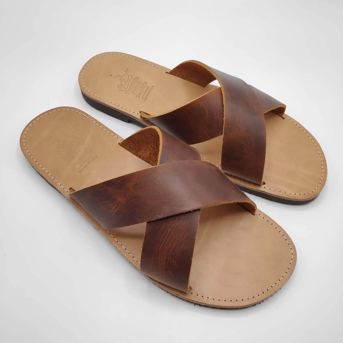 Our customers have pretty much replaced their go to flip flops with the Orcos men’s slides to give them a more groomed casual summer look. Handmade in our Pagonis Greek Sandals workshop in Naxos using 100 % genuine leather, opt to customized this men’s leather slide sandals in 25 different colours and leather type. Drop us a line and we will be more than happy to assist you.
