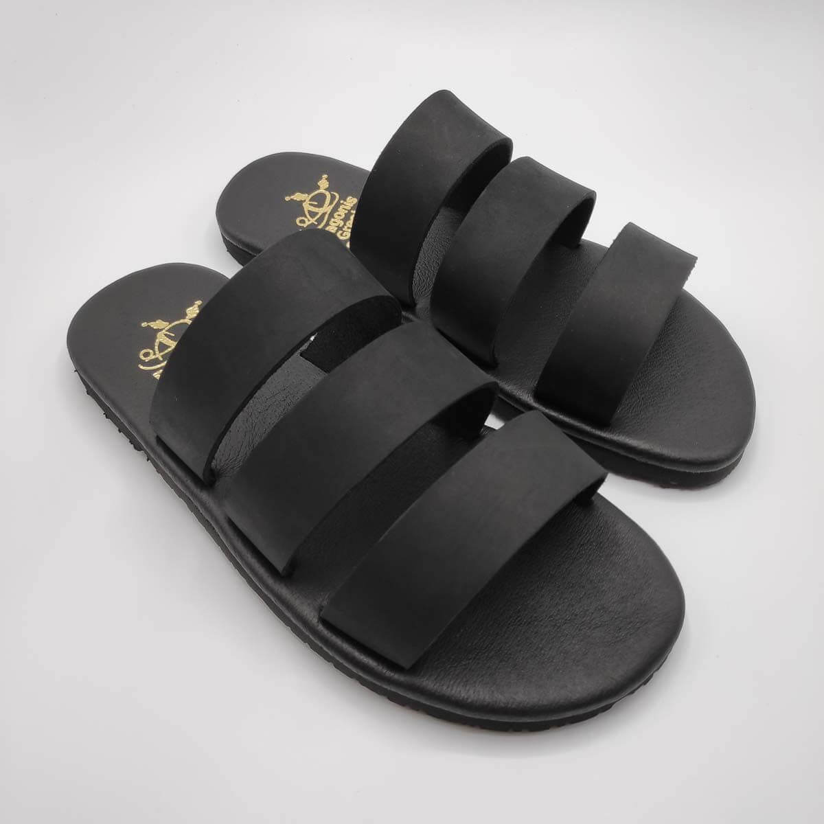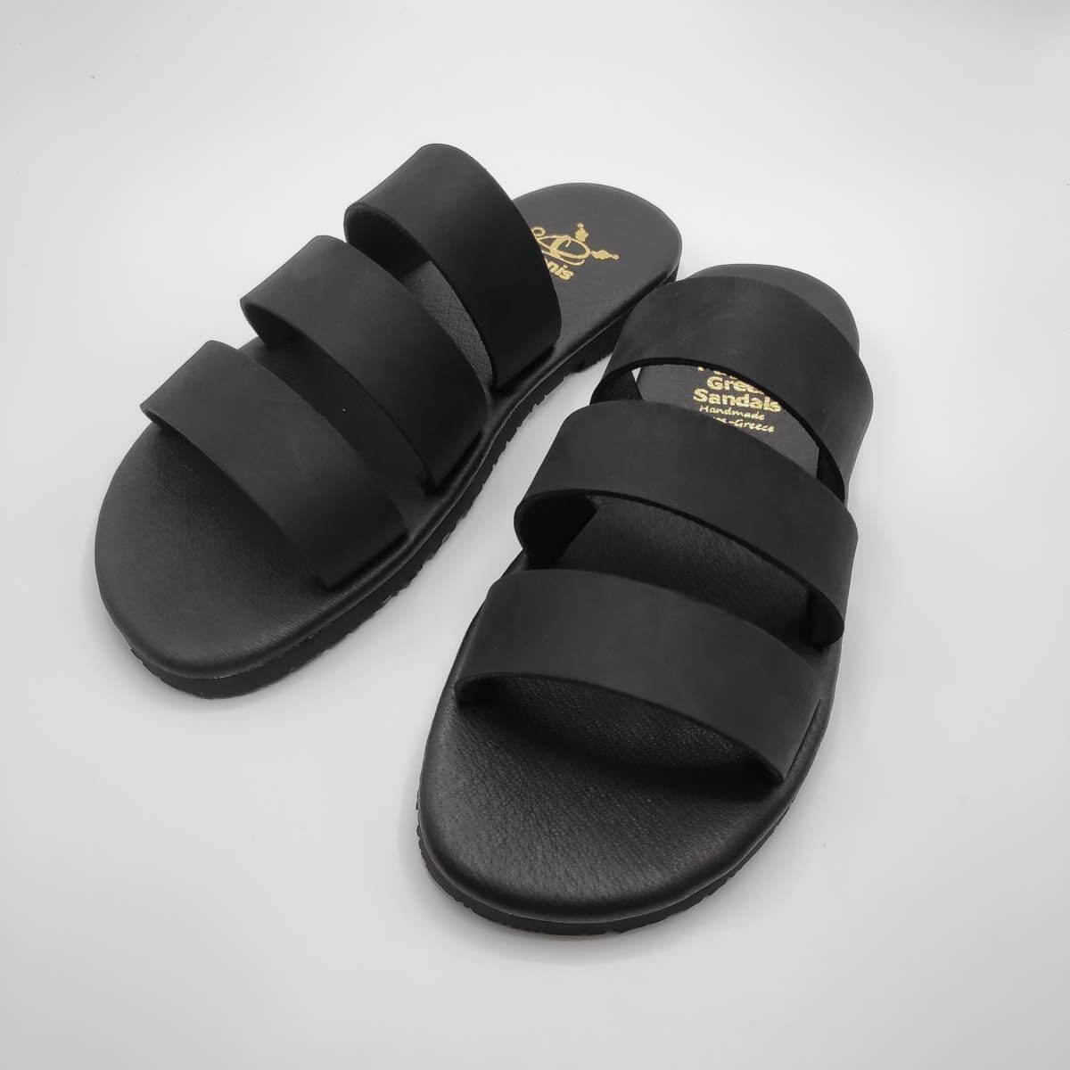 Men’s Leather Formal Sandals This three strap mens leather sandals is one of our favourite modern leather sandals for men. This slides can be made fun, funky, sleek, boho or a combination of them all. This model is motivated by the women’s three strap model. Its design is simple and modern. The straps are 3 cm in width and set on a Texon Cellulose Board 5 mm laminated with leather upper sole and a textured rubber bottom sole. This composition makes for great comfort, providing excellent grip and durability.
