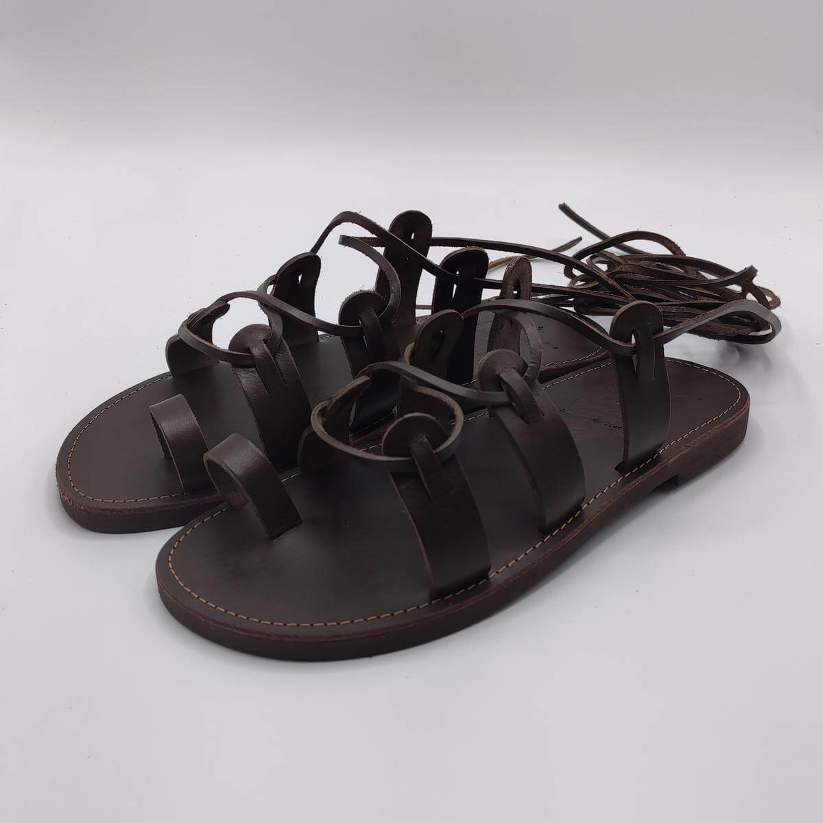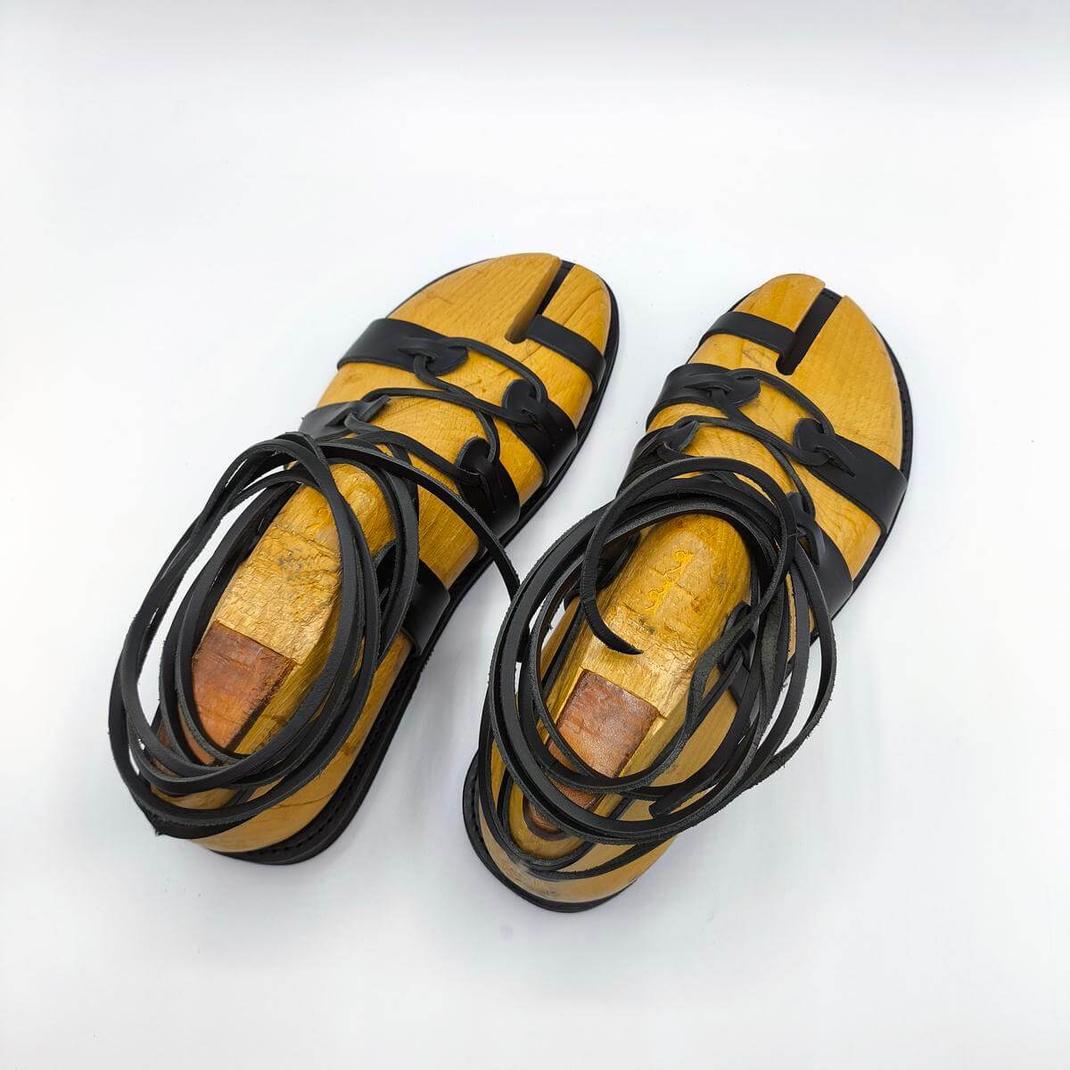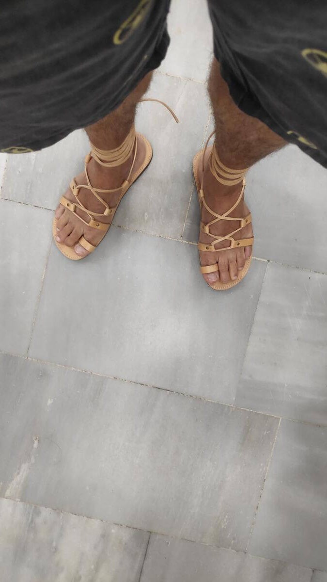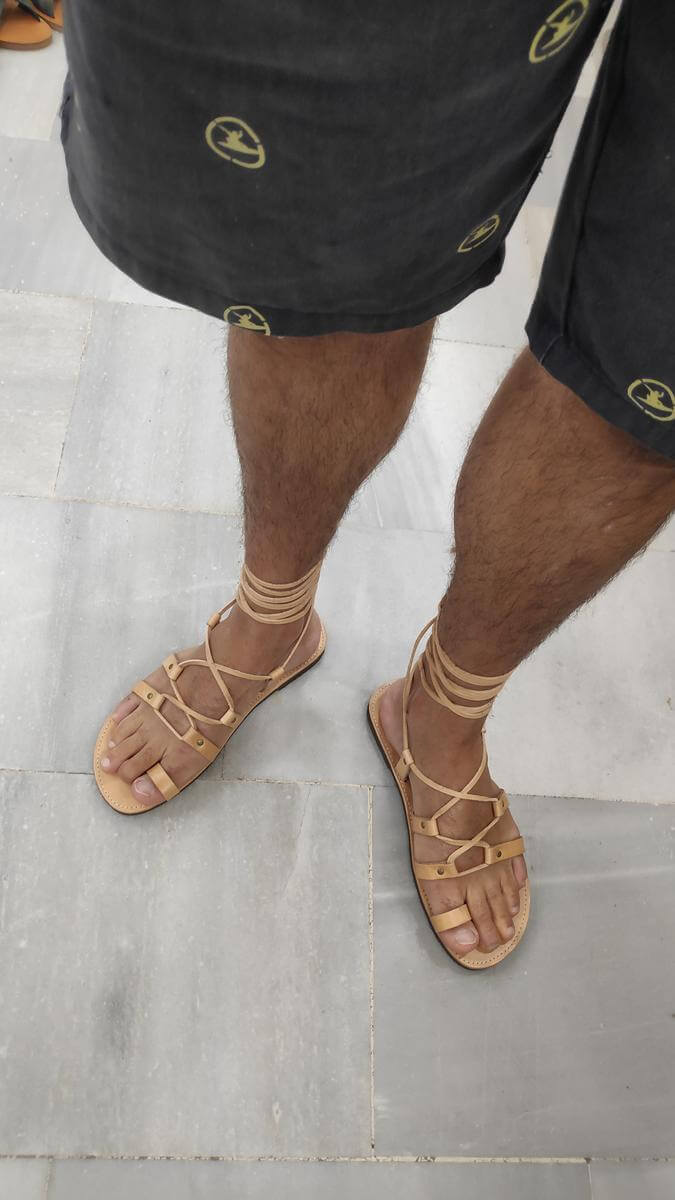 [vc_row][vc_column width=”1/3″][vc_column_text text_larger=”no”]SPARTAN Sandals For Men Lace up are the most emblematic Greek style shoes and a popular all-time classic. Light yet supportive, these sandals are being praised for their comfort and genuine Grecian character. Consisting of a sturdy leather sole, a toe ring, soft leather straps and a long leather cord tied around your ankle or up your calf, this pair will immerse you into an endless sense of freedom. Due to their uniquedesign, they adjust perfectly to your feet’ shape, giving you the option of wearing them as loose or tight as you like.