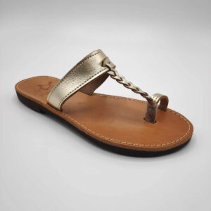 Braided Leather Sandal 100% genuine leather thong sandals available in natural shade. These slides consist of a wide instep strap and a toe ring joined together by a thin braid. A soft, leather upper sole is combined with a rubber bottom sole to offer you comfortable and light walking. Minimal design, good fit and hold.