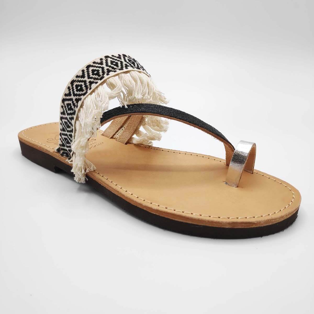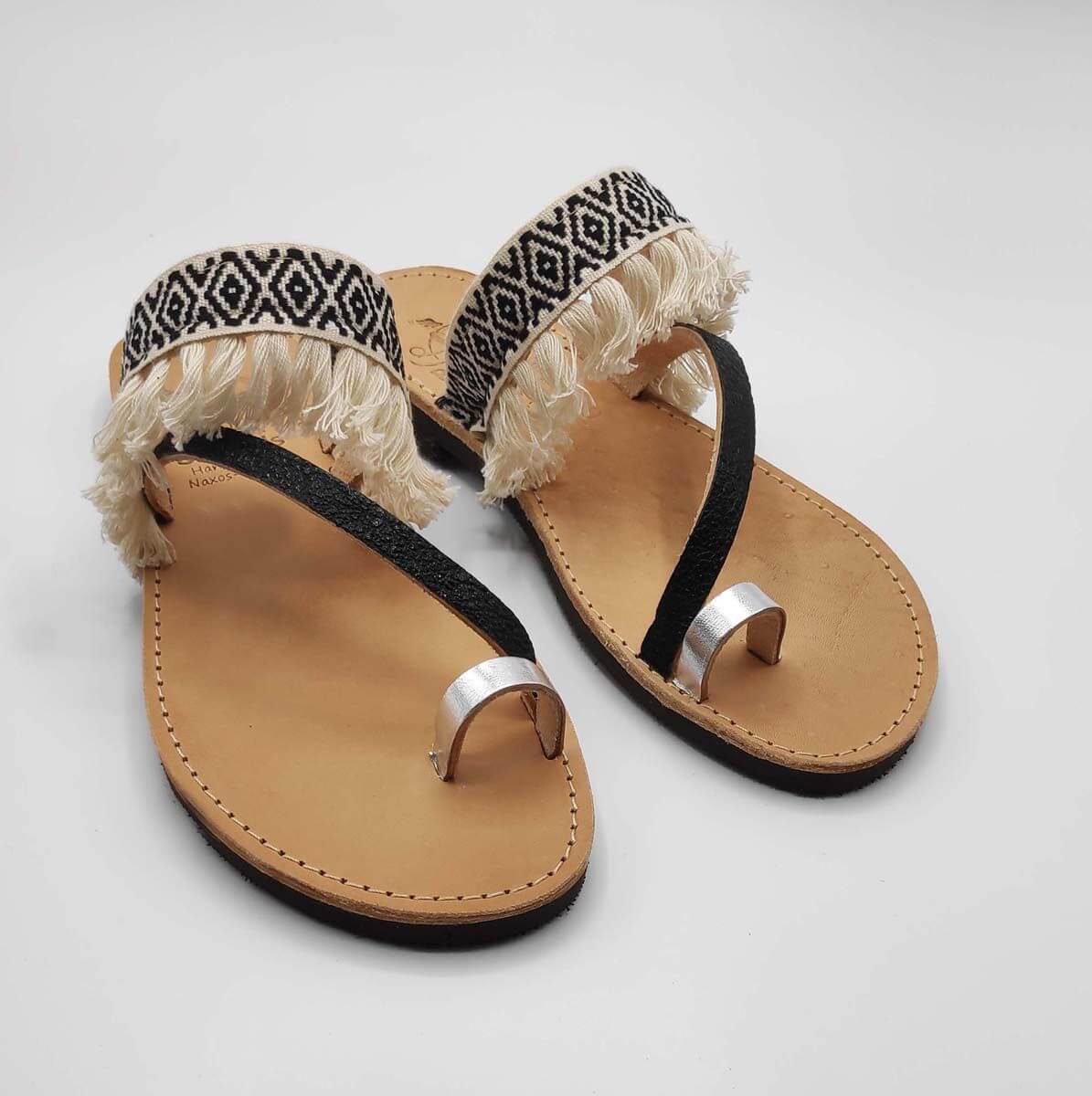 Our leather sandals are handmade in our Pagonis Greek Sandals workshop in Naxos, Greece using 100 % genuine leather. Have a browse through Comi Kiani or Comi Strass for embellished jewelled strass sandals option of our Comi style sandals. Or you can contact us to have your leather sandals custom made. This chic boho sandals with fringes is fun and playful, you will love sliding them on in the summer!