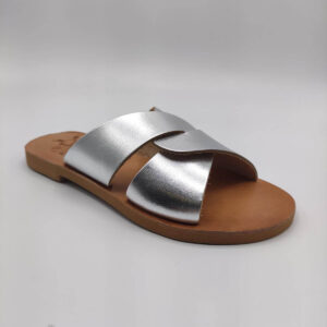 Desmos Women Leather Slide (knot-bond-link) meaning of this sandal with the two straps will create a sade and chick aura that cannot be missed. Our best seller will make your holidays unforgettable walking our the small streets in Naxos and Small Cyclades.