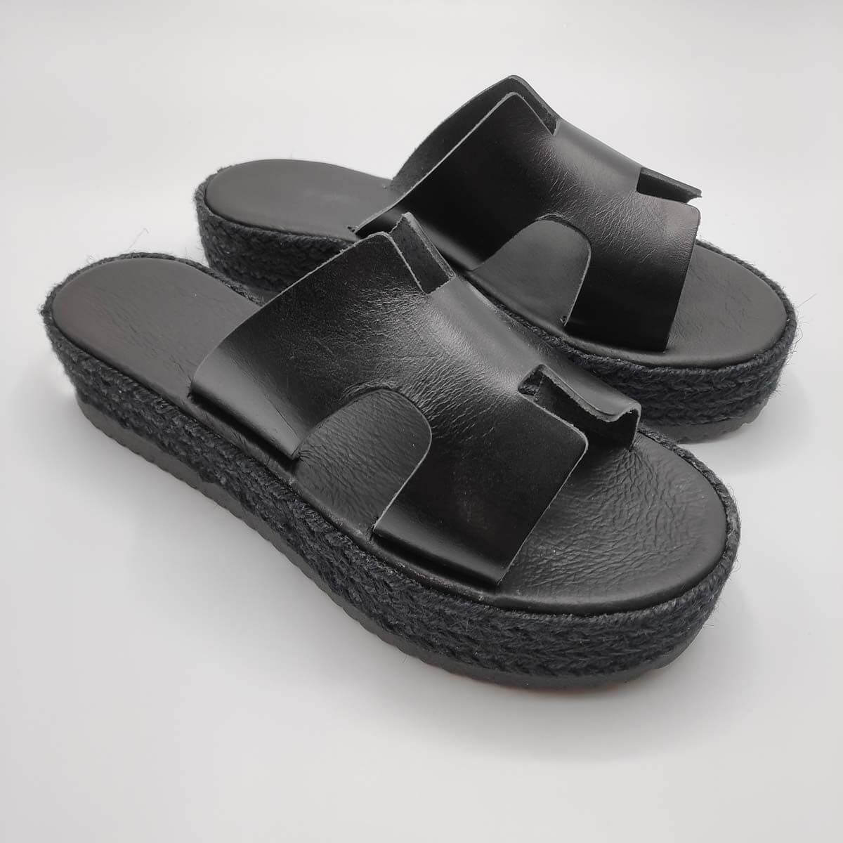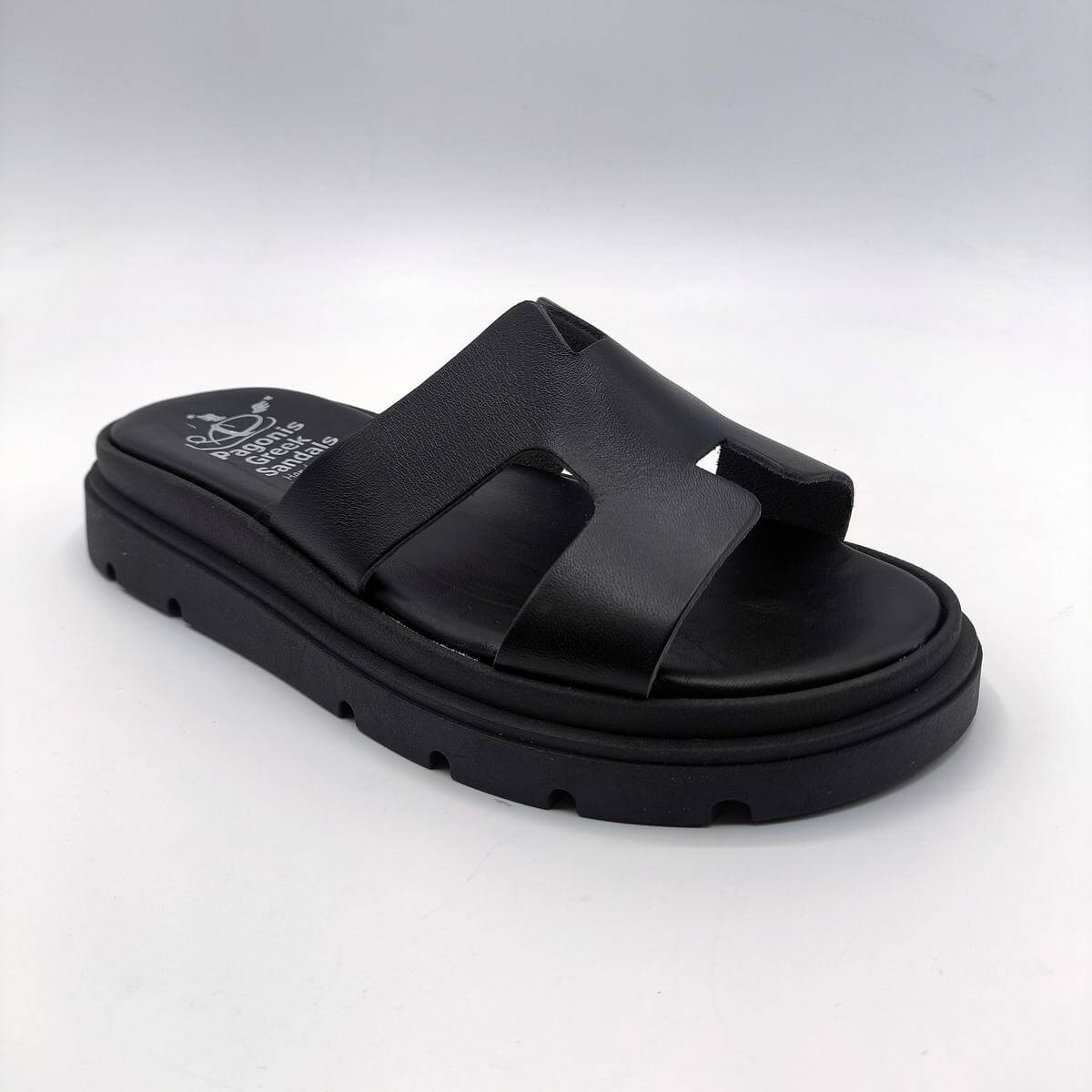 The Greek Hermes slides is elegantly cut with clean lines and desirable curves straps set on a comfortable soft upper leather sole, platform base and rubber bottom soles providing excellent durability and grip. Also available in soft sole or flats and leather fur finish.