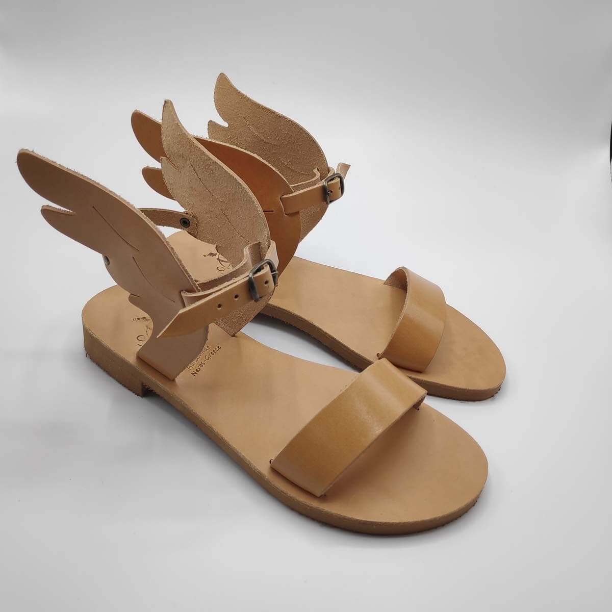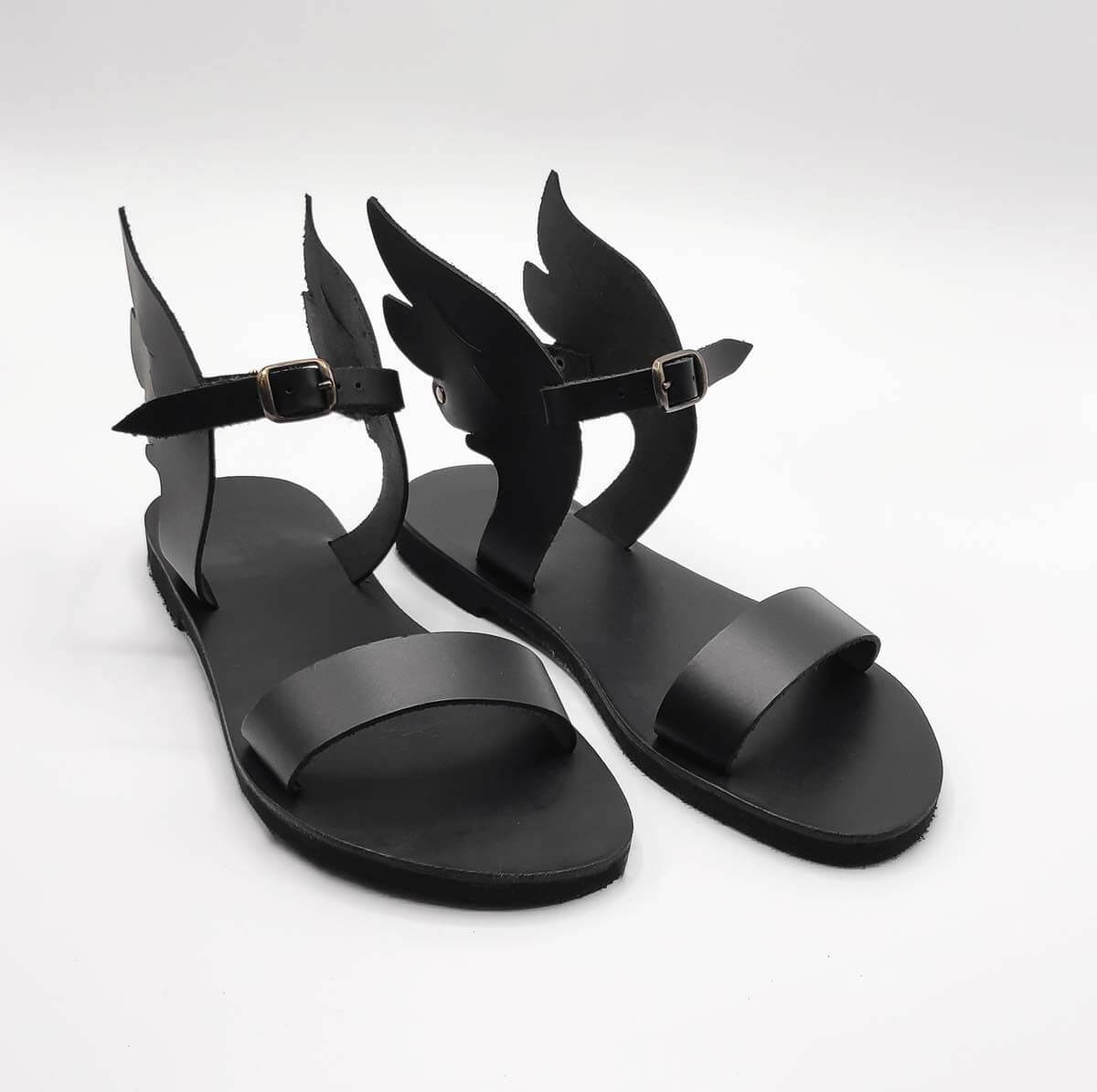 Hermes Greek God Winged Shoes. Ancient Greek Sandals Hermes Vai | Wing | Pegasus sandal is one of the most well-known greek sandals for the last 3 years. The ultimate fashion icon leather greek sandals for all the stylish women. Handcrafted wings on each side of the ankle made from durable leather hold the ankle.