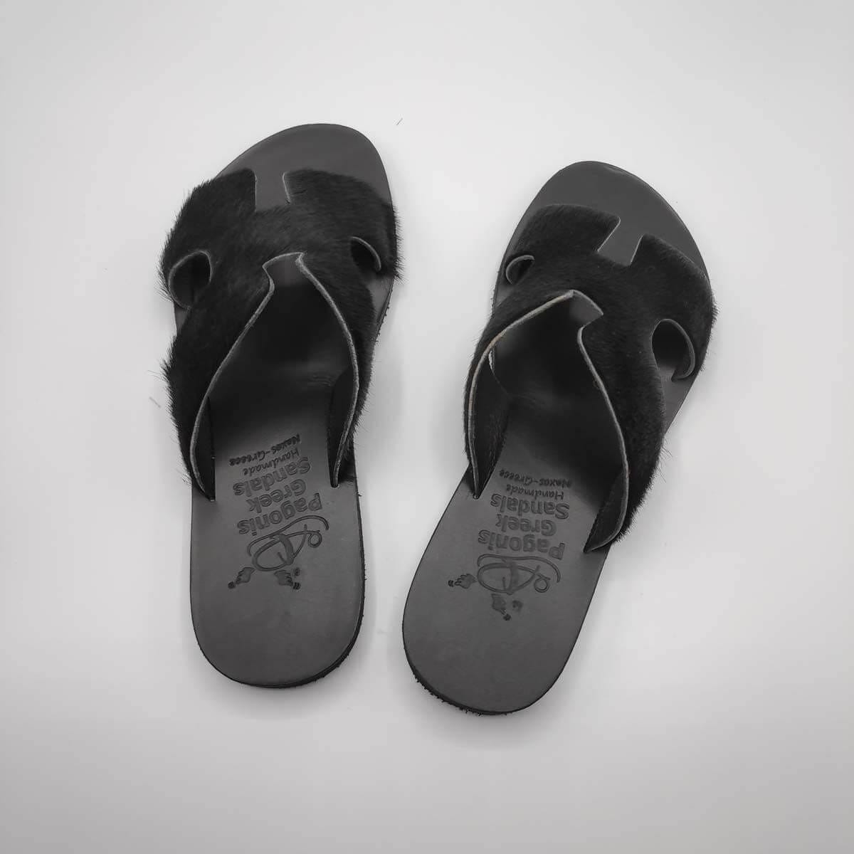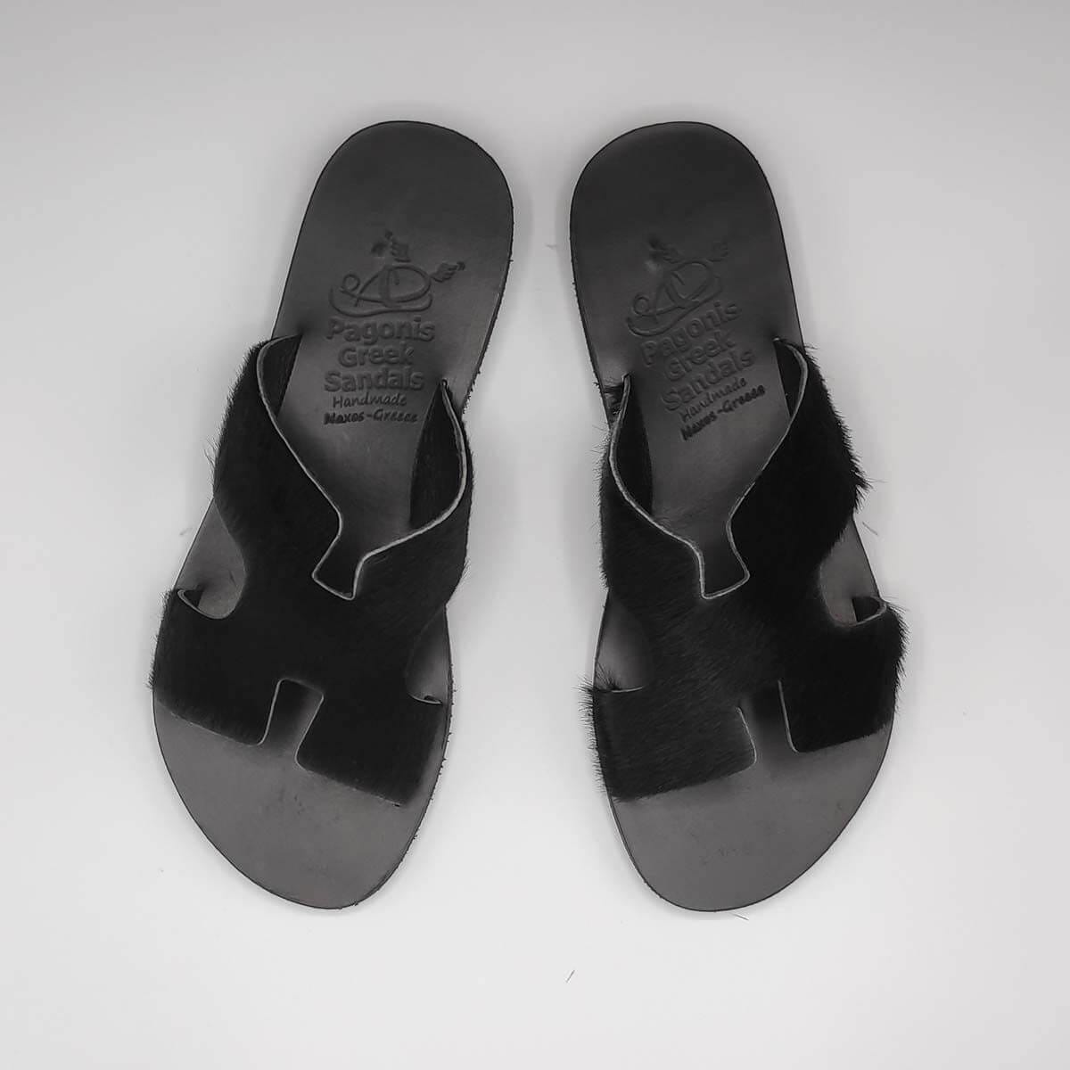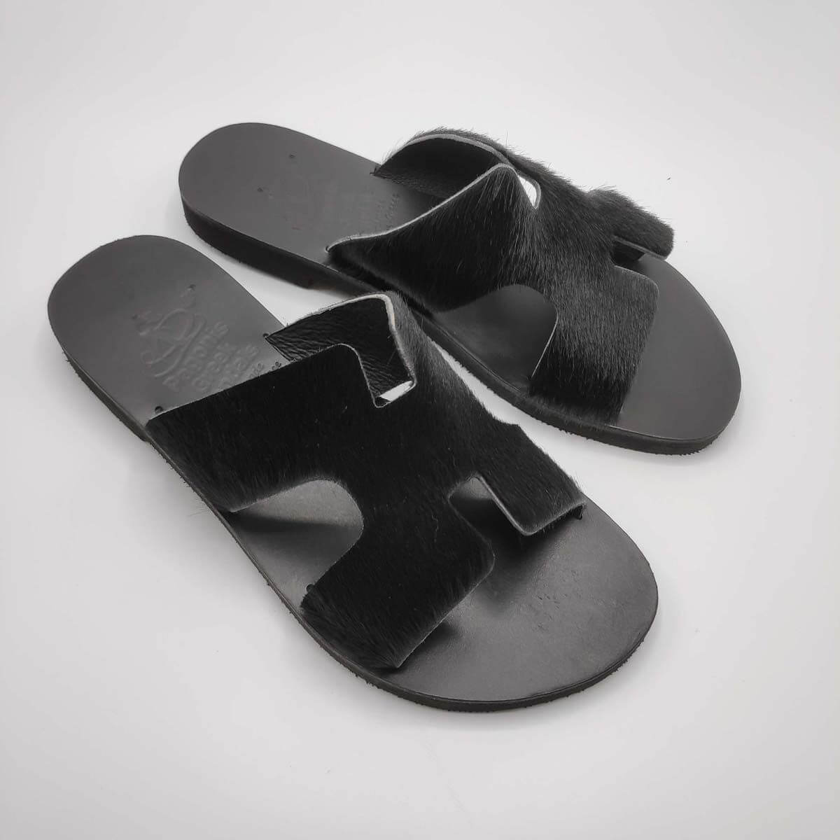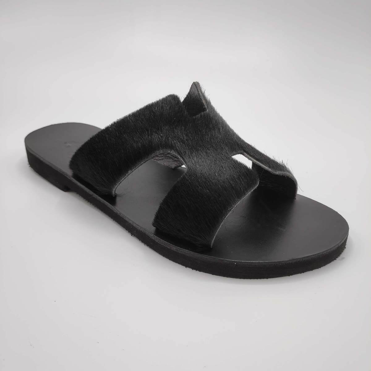 The Greek Hermes Slippers Women slides is elegantly cut with clean lines and desirable curves straps set on a comfortable upper leather soles and rubber bottom soles providing excellent durability and grip. Also available in soft sole or platform heels and in leather fur finish.