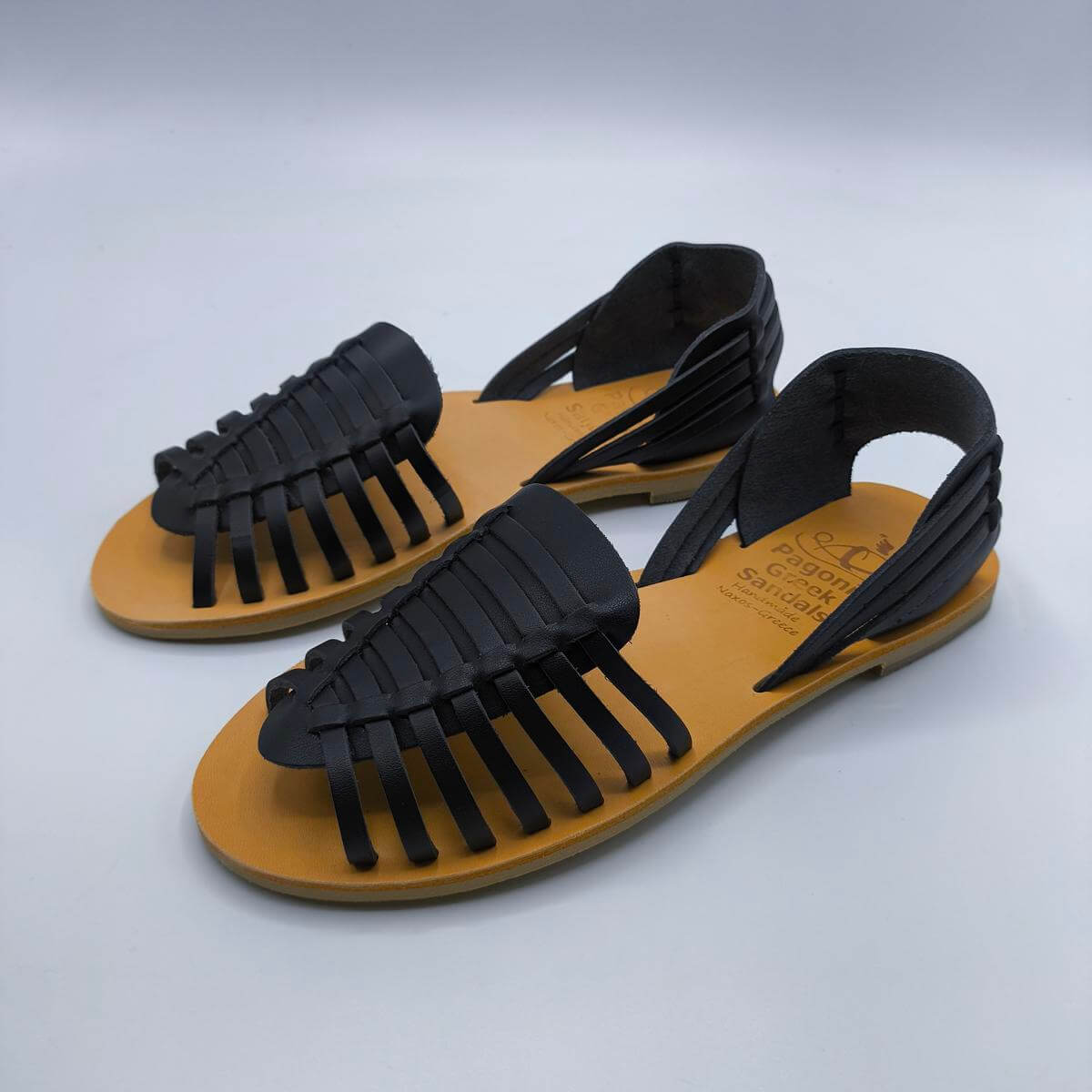 [vc_row][vc_column width=”1/3″][vc_column_text text_larger=”no”]Huarache Leather Sandals by Lissos Leather Flat Shoes