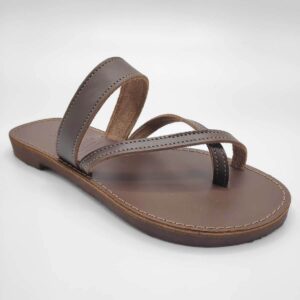 Leather Toe Ring Minimalist Sandal. Woman style leather sandal.  One strap and two more go around the big toe.