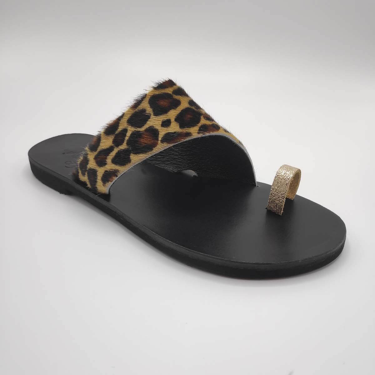 [vc_row][vc_column width=”1/3″][vc_column_text text_larger=”no”]The Apollon toga style leather sandal with toe ring answers your call for fun, trendy and sassy all in one model. Designed with a big toe ring, a curvaceous asymmetrical top foot leather strap, you wouldn’t think twice about sliding your feet into these barely there sassy beauties. The straps are set on a leather upper sole for comfort and a rubber bottom sole for excellent grip and durability.