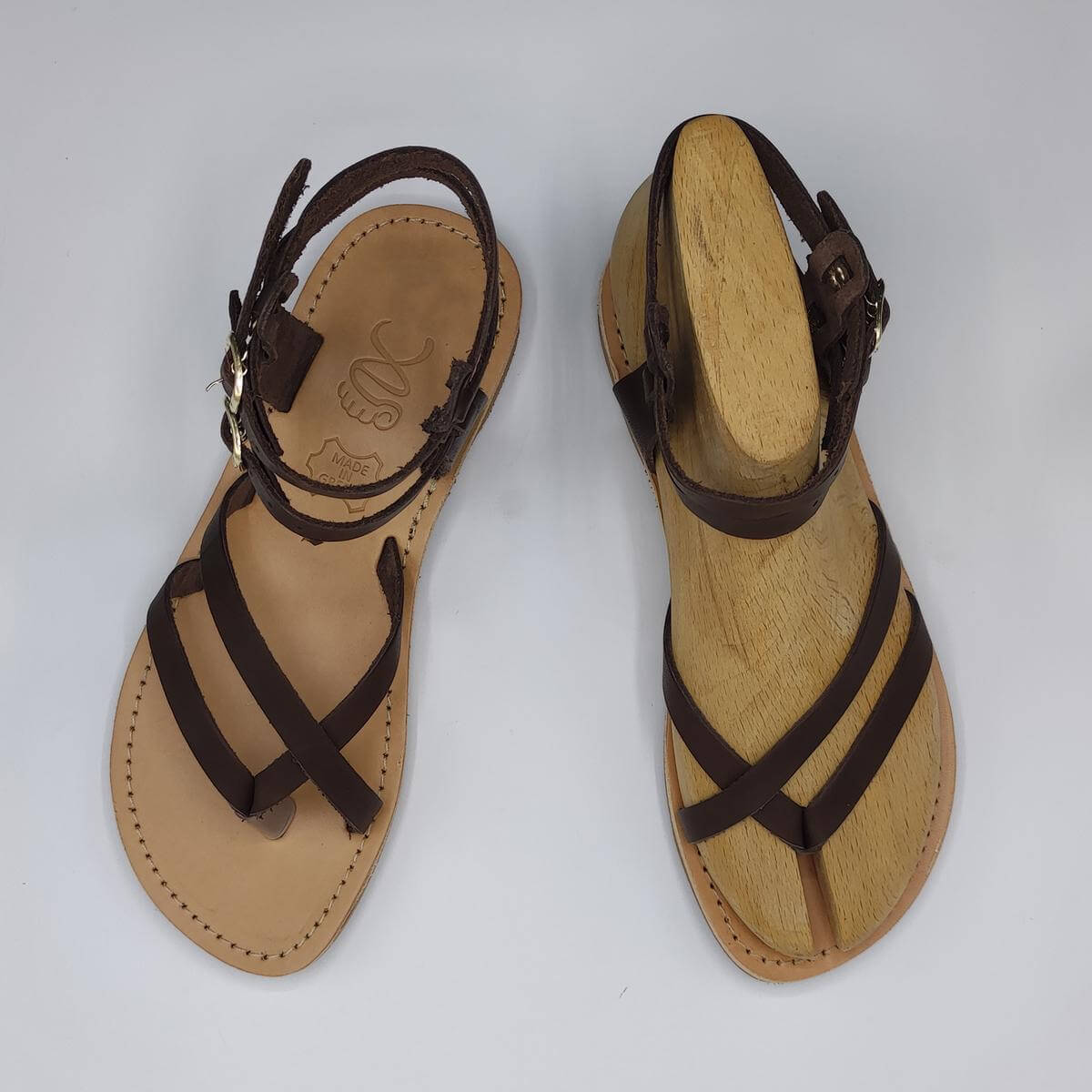 The brown color gives these sandals a versatile and timeless look, making them perfect for a variety of occasions, from casual outings to more dressy events. The design features a comfortable and secure strap that wraps around the ankle, providing extra support and stability.