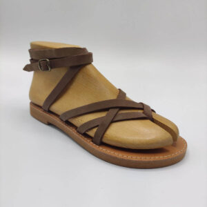 Flat Strappy Leather Sandals lace up leather sandals with criss-cross straps set on a leather upper sole and a rubber bottom sole.