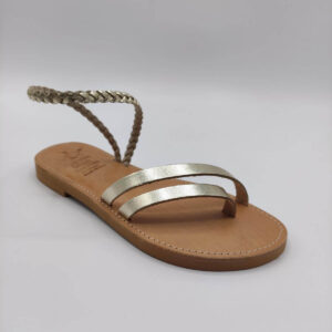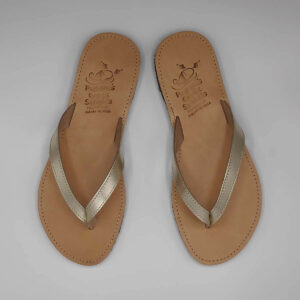 Italida Wedding Sandals Gold is one of our embellished back strap thong leather sandals. Designed and handmade with thin, dainty leather straps, an adjustable ankle strap with metallic buckle, stitched leather upper sole and a rubber bottom sole. This pair has been jazzed up from its classic style Mikraria. Made from 100% genuine leather, check out Melinos ~ Keros ~ Kassandra ~ Argani for other embellished sandals options.