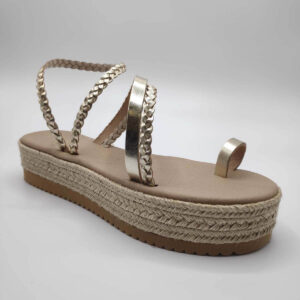 Eleftheria Plexi Leather Sandal Loop Natural and brass leather braids looped over the toe and foot are the only parts of this classic sandal, which allow the wearer to feel almost barefoot as the temperature heats up. Made with traditional techniques for beauty and comfort, this style can be worn from beach to bar and beyond - and is sure to work its way into your wardrobe in more than one color to accompany your favorite summer dresses