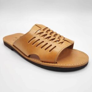 Slip on mens leather sandals in Natural and Brown Color. A classic men's slide with an interesting design. Matches with casual or more sophisticated outfits. Handmade in Greece with the best material. Making leather sandals the last 30 yeats. Pagonis Greek-sandals.
