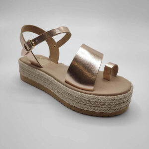 Elegantly designed platform sandals with a big toe ring, wide top strap cut diagonally across the feet and an adjustable ankle strap set on a cushioned leather upper sole, platform based and a rubber bottom sole for great comfort and support.