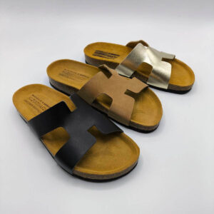 Birkenstock Style H Cut Klimatsakis Handmade Slide Anatomic women's slides with memory core top sole. Available in Gold Nude and Black color.