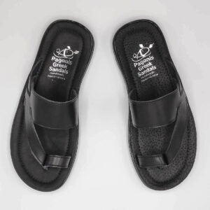 Men's leather slides with soft top sole for comfort.